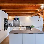 Cozinha totalmente equipada juntamente com microondas, chaleira elétrica e refrigerador estão disponíveis nesta casa de férias.